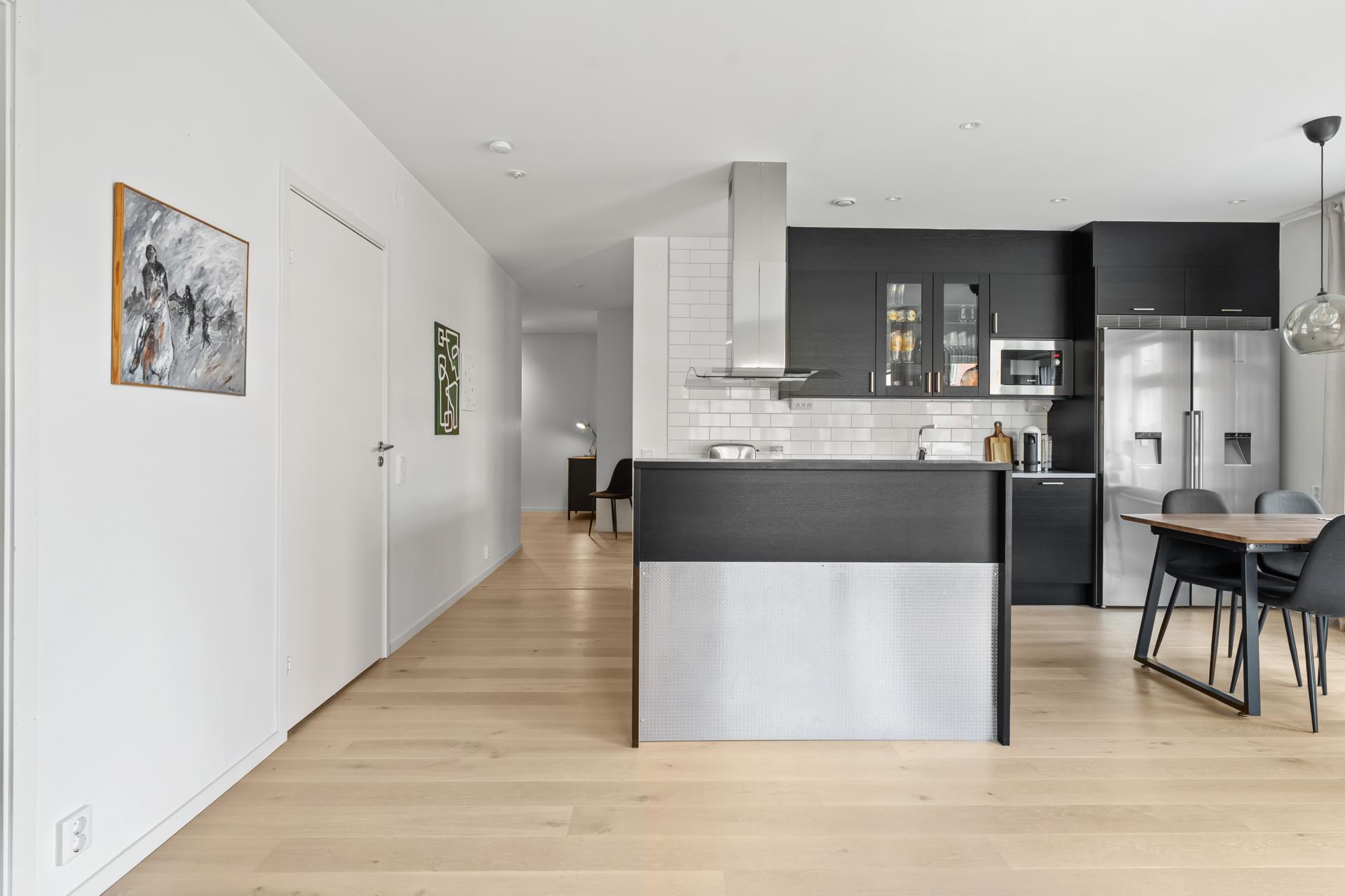 Bostaden har ett stilfullt kök från Marbodal, två rymliga sovrum och bra förvaring i lägenheten. Badrum med både tvättmaskin och torktumlare. Från garaget tar man hissen upp till lägenheten.