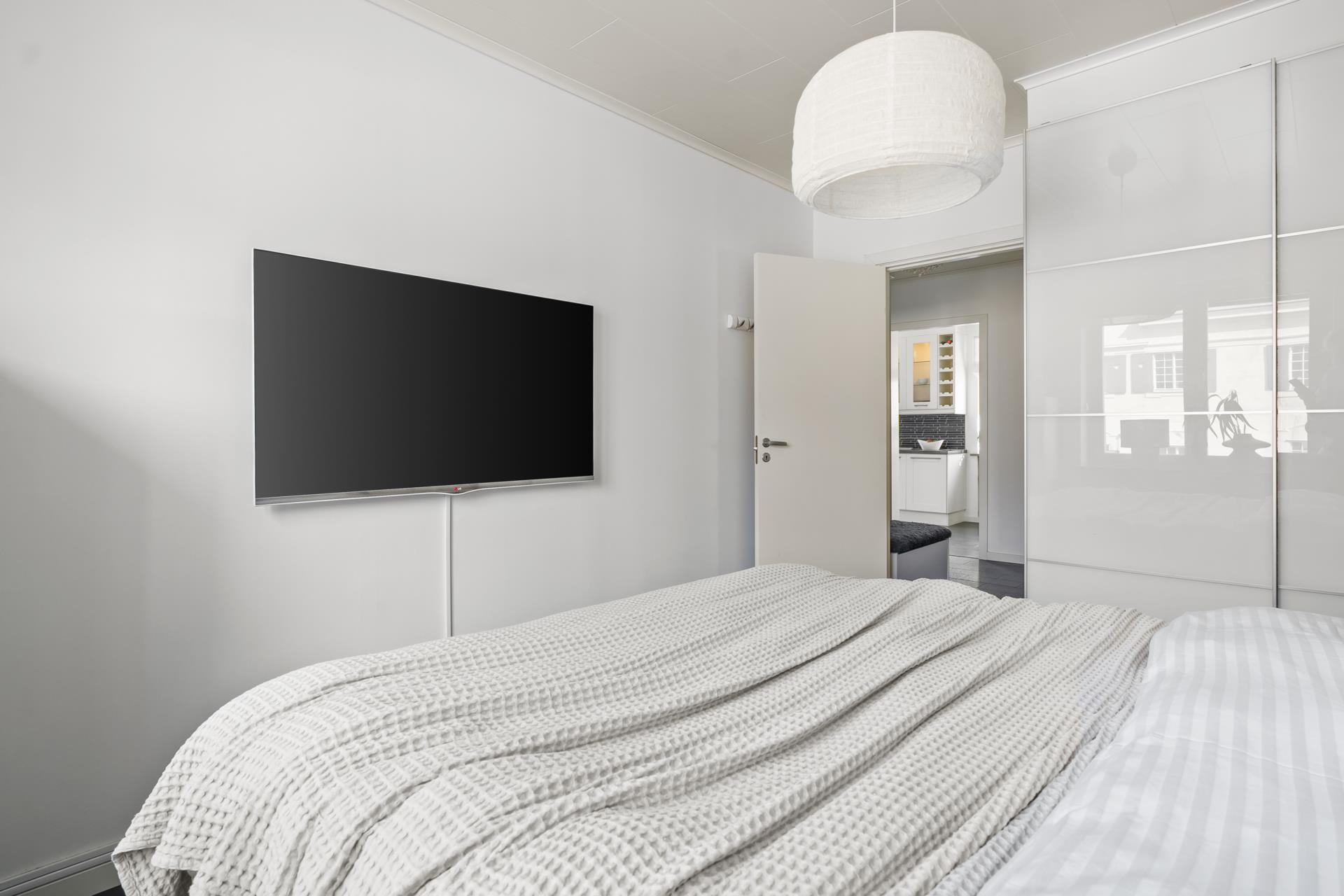 Rymligt sovrum med plats för dubbelsäng och möblering.