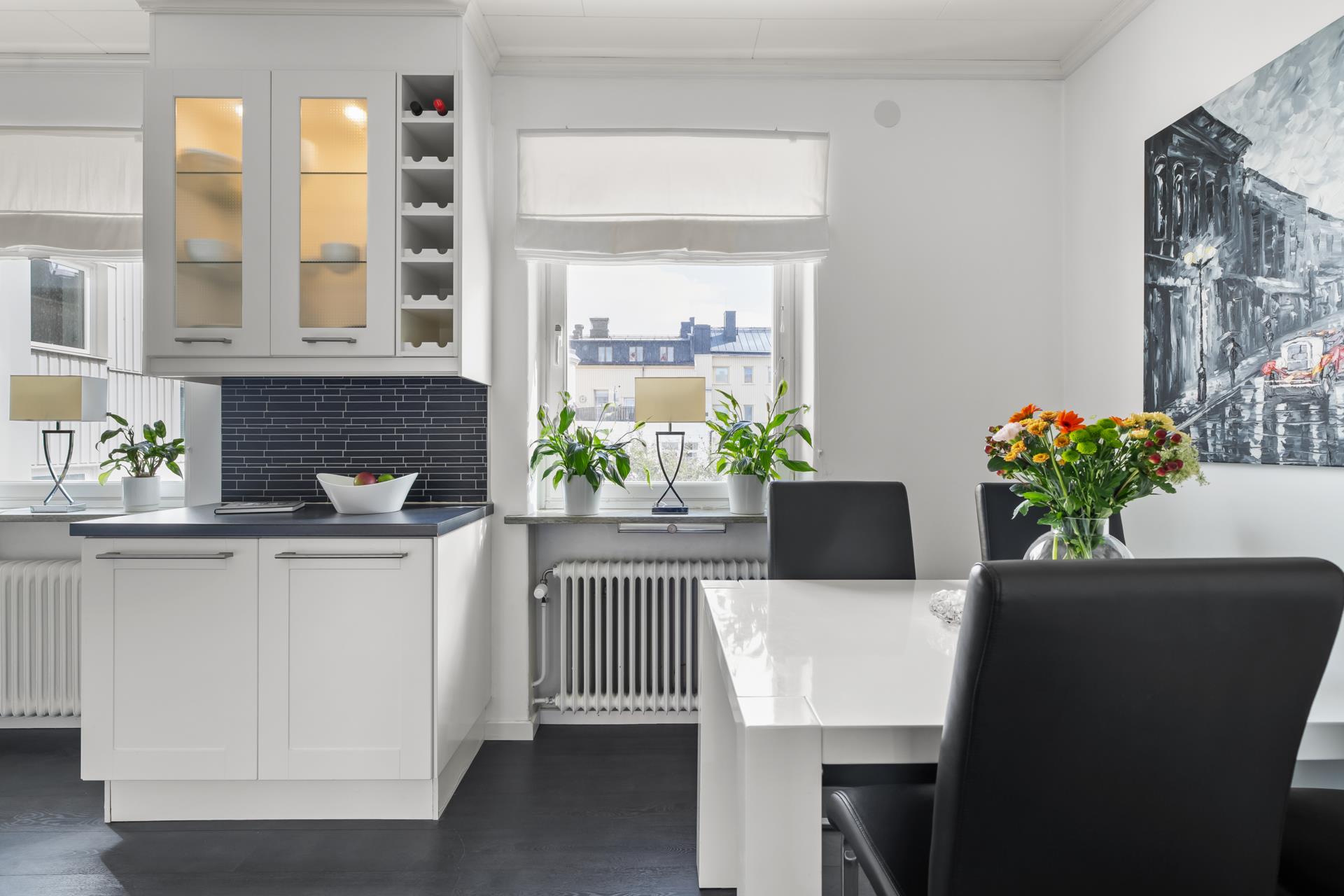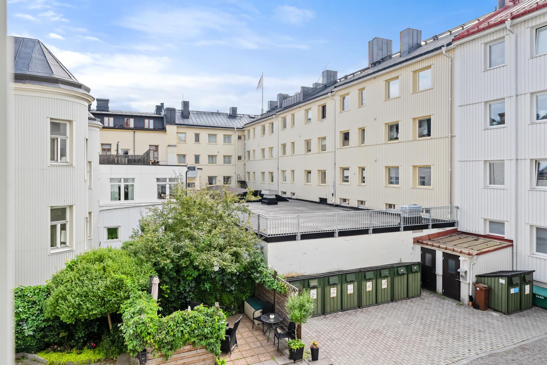 I samma hus finns vindsförråd, övernattningslägenhet och tvättstuga. Tillgång till både uteplats på innergård och takterrass i ett högt läge.