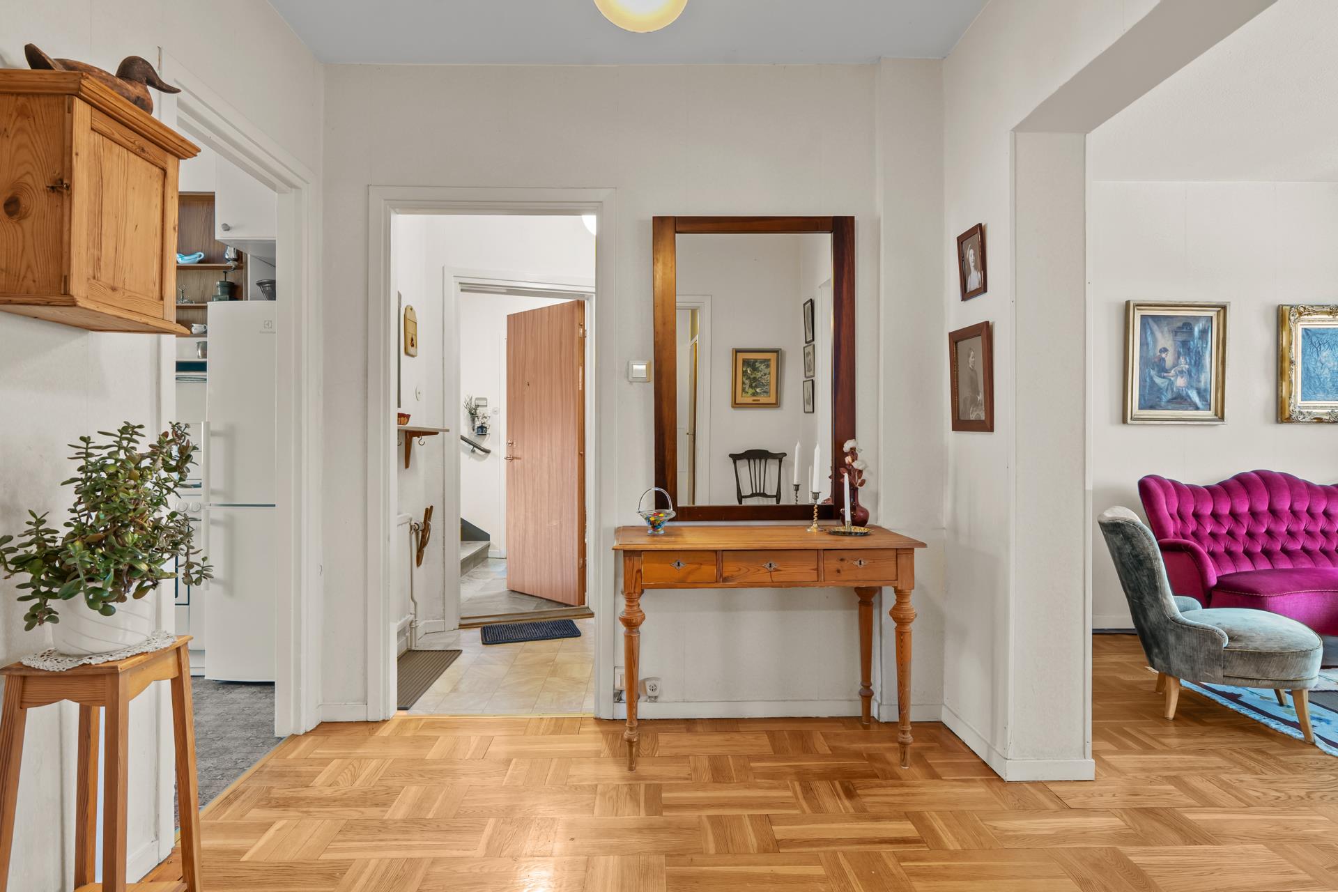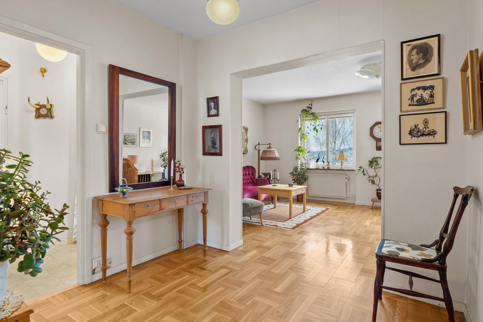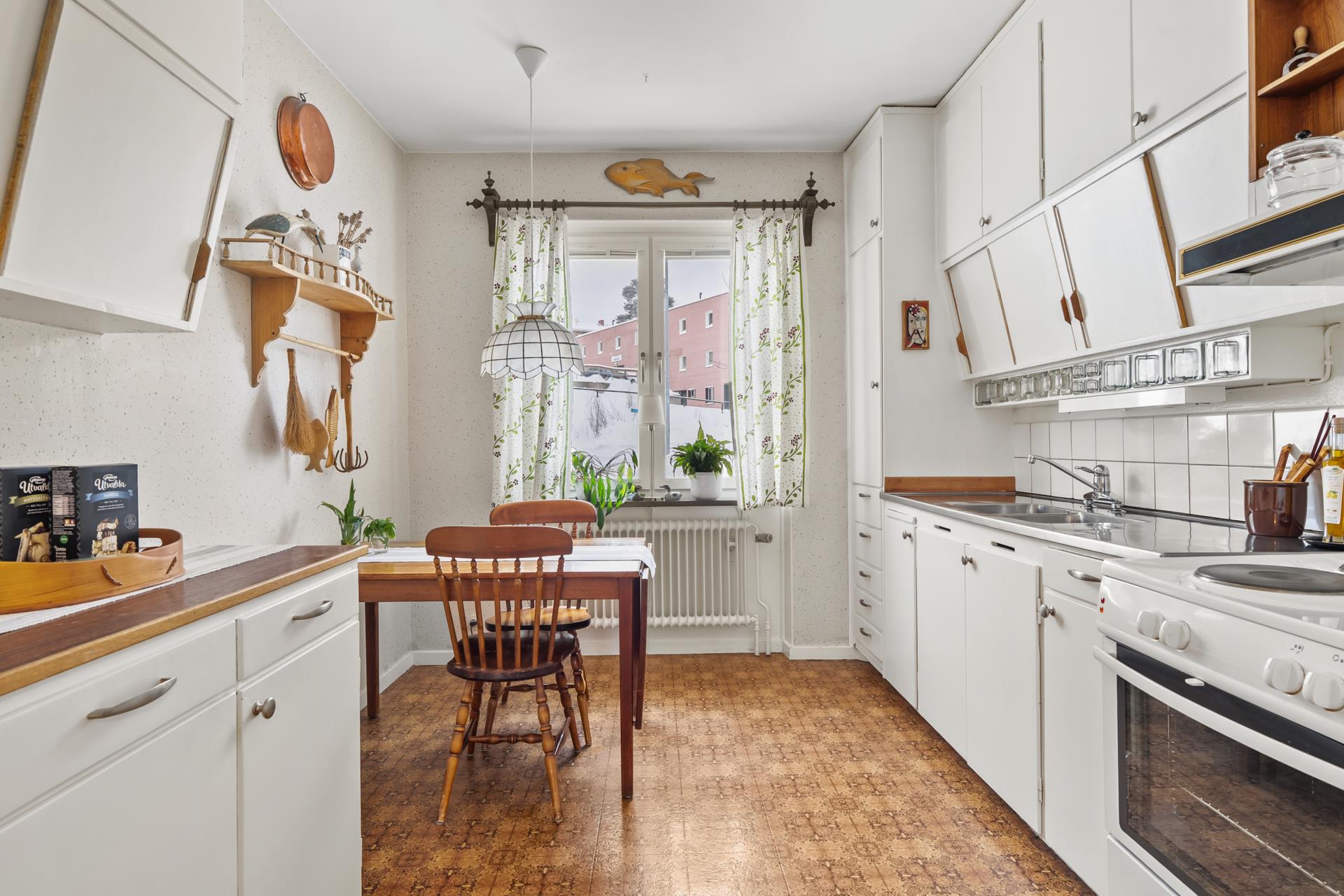 Bostaden endast en halv trappa upp på gaveln och bjuder på en fantastisk utsikt över Sundsvall och hamninloppet – en vy som gör varje dag lite vackrare. Lägenheten andas 50-tal med originalinredningen bevarad. Här erbjuds en ljus och välplanerad lägenhet på hela 99 kvm. Vardagsrummet har en härlig rymd med plats för olika typer av möblemang, och här finns även en eldningsbar öppen spis som förhöjer stämningen under årets svalare månader. Balkongen ligger ostört och blir snabbt en favoritplats där du kan njuta av soliga dagar och stilla kvällar. I lägenheten finns tre rejäla sovrum, ett hemtrevligt kök med utrymme för matplats , ett badrum med ljusa färgval och goda förvaringsmöjligheter.